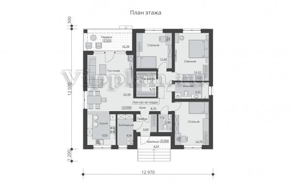 | Размеры дома: | 12.07м×12.97м |